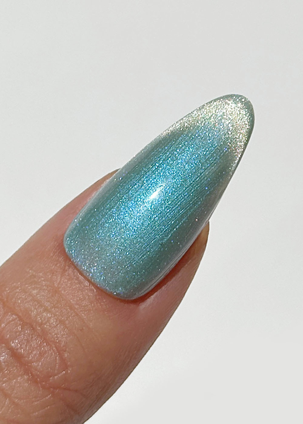 A turquoise magnetic gel polish with a golden teal shimmer that shifts like the sun on ocean waves. Velvet nails have never looked so good. Transform every set into glimmering cat-eye nails with a sweep of a nail magnet, this is quick, easy nail art that commands attention.