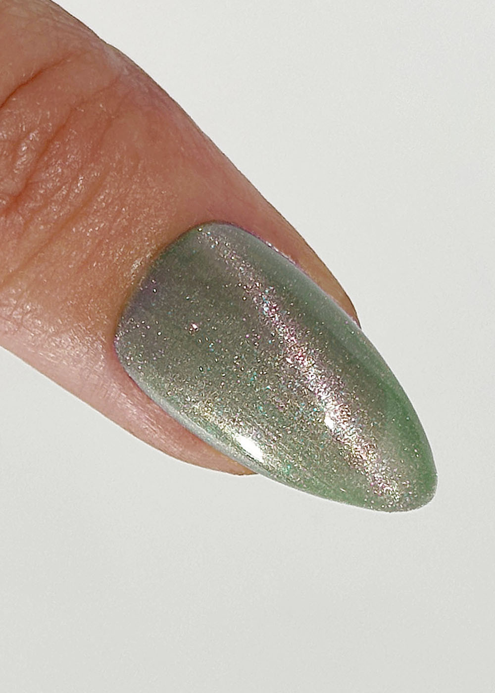 You voted, That Girl is back! A soft sage green magnetic gel polish with muted golden highlights — the kind of green that goes with everything. An understated shade that does all the talking — just creamy, pro pigment with two-stroke coverage.